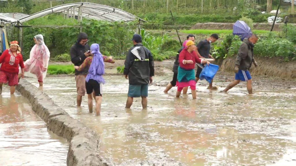 काठमाडौं उपत्यका लगाएत देशभर नै किसानहरु धान रोप्न व्यस्त भएका हुन् । सामान्यतया असार १५ पछि रोपाई सुरु हुने मानिए पनि काठमाडौं उपत्यका वरपरका क्षेत्रमा रोपाई सुरु भइसकेको छ । लगातार भइरहेको वर्षाका कारण पनि किसानलाई रोपाईं गर्न सजिलो भएको छ । समयमै मनसुन सुरु भएकाले खेतीपातीका लागि सजिलो भएको किसानहरु बताउछन् । त्यस्तै कृषिकर्मलाई मध्यनगर गर्दै प्रशासनले
